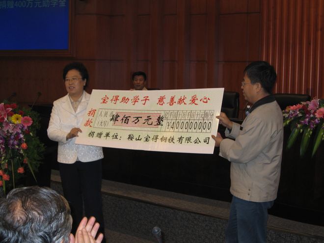 "宝得教育基金":2006年,在鞍山市第十三中学50周年校庆时,宝得公司一次性捐资100万元用于奖励优秀学生教师、资助寒门学