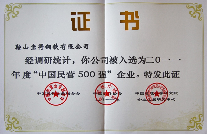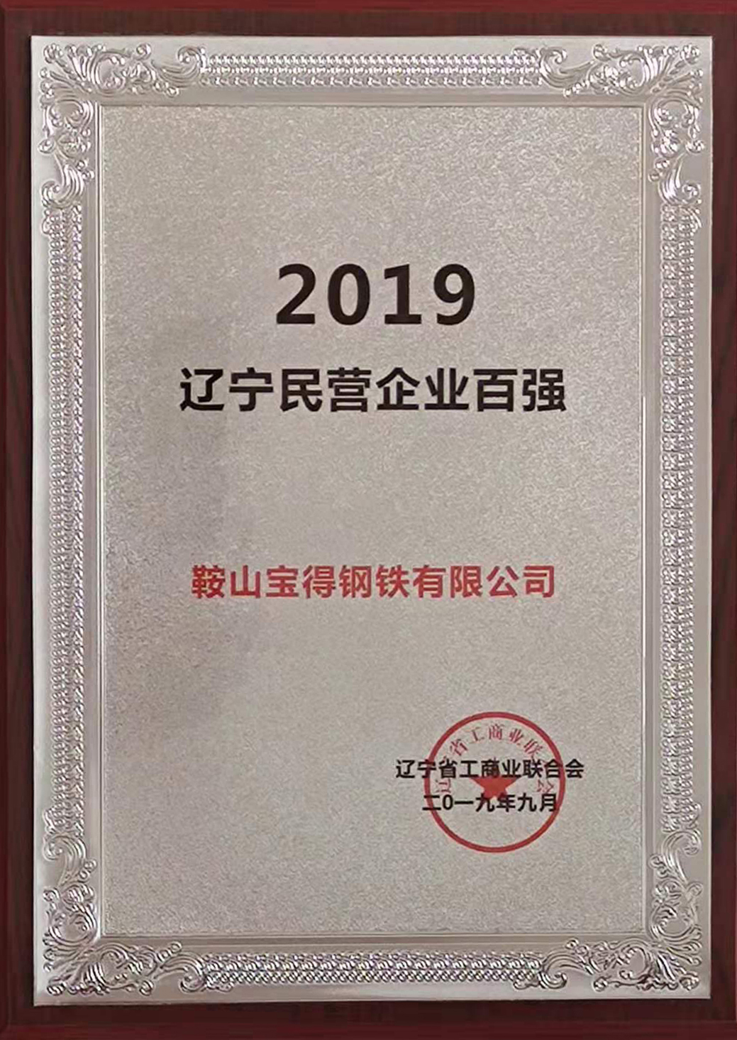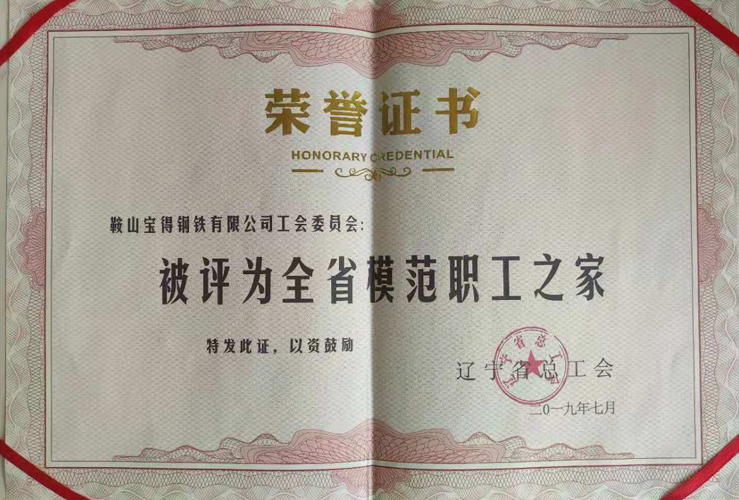 ●2011年3月,公司生产“宝得”牌热轧工、槽、角系列型钢,被辽宁省名牌战略推进委员会、辽宁省质量技术监督局授予“辽宁省名牌产品”称号。