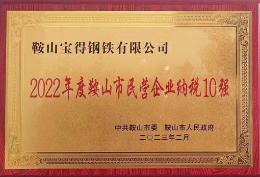 ●2010年度被鞍山市(达道湾)经济技术开发区管理委员会授予"优秀企业"称号。