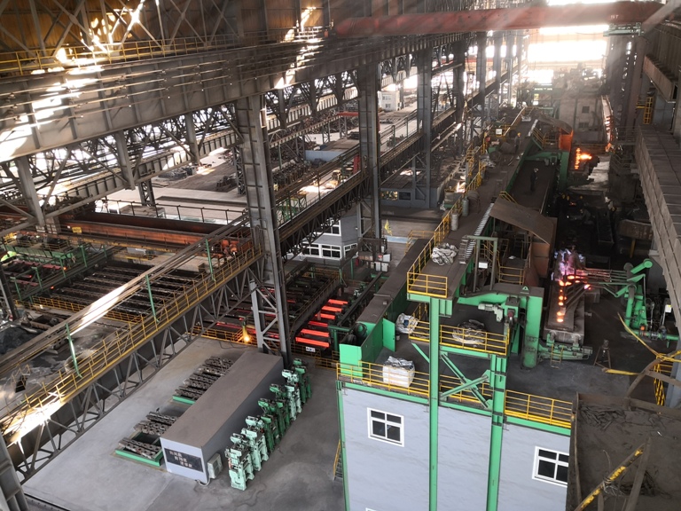 炼钢厂主要生产设备有一座120吨氧气顶吹转炉、一座R12m六机六流大矩形坯连铸机、一座R8m八机八流方坯连铸机。配套设备包括一台3MW蒸汽发电机组、一台静电除尘器、一次除尘金属布袋除尘器、二次除尘和三次除尘。主要产品有230×230连铸坯、230×350连铸坯、320×410连铸坯,年产钢坯量200万吨。