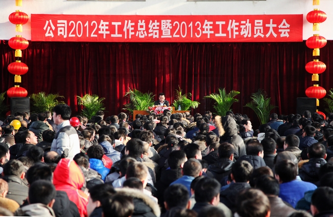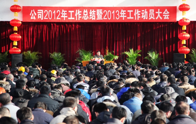总经理张铁汉在会上做上年度工作总结、当前形势分析及应对措施。号召大家在当前的形势下,眼睛向内,抓好精细化管理,积极开拓市场,以优异的工作成绩,圆满完成2013年的工作目标。