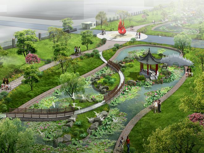 图为荷花池园林景观效果图