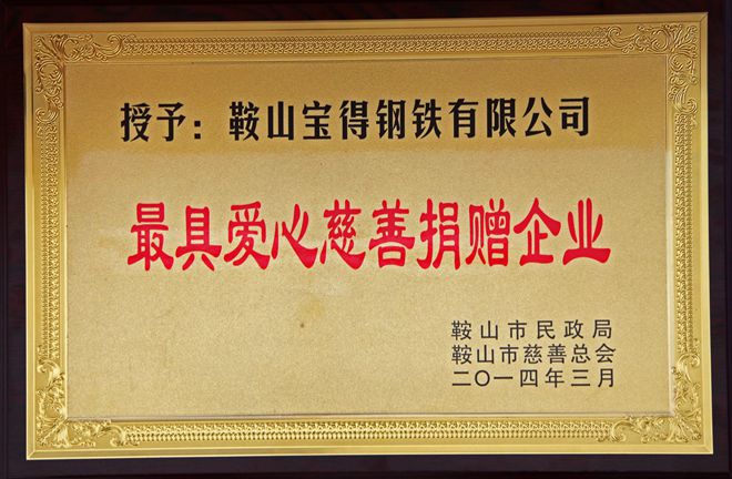 3月7日,在鞍山市慈善总会第三次会员大会上,公司荣获“最具爱心慈善捐赠企业”、“最具影响力慈善项目”荣誉,董事长荣获“最具爱爱心慈善楷模”荣誉称号。